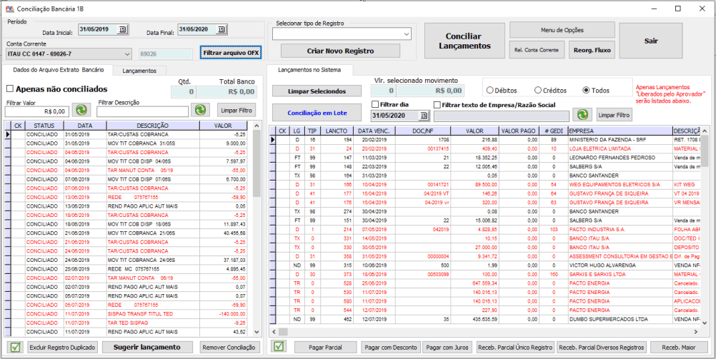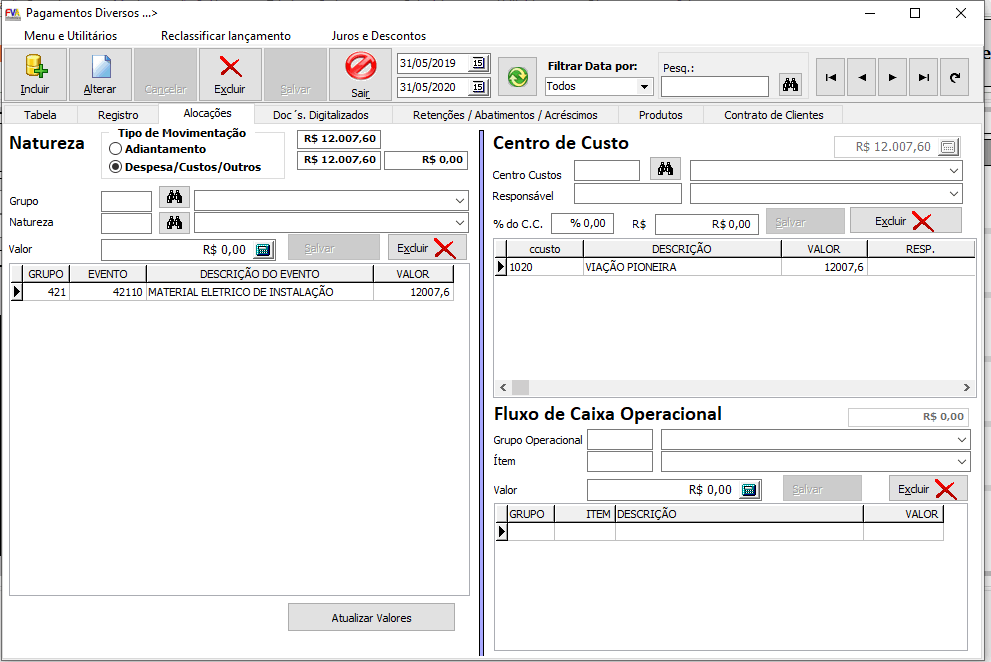 Controle de adiantamento de fornecedores, clientes e representantes.