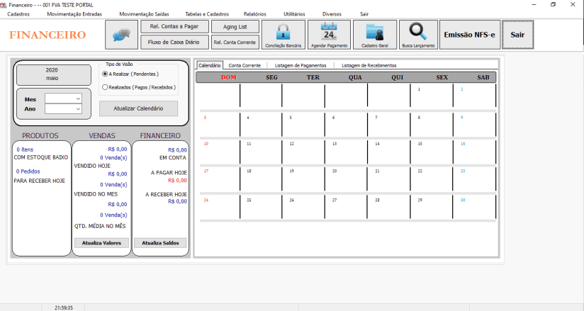 Fluxo financeiro diário, semanal, agenda e gráficos.